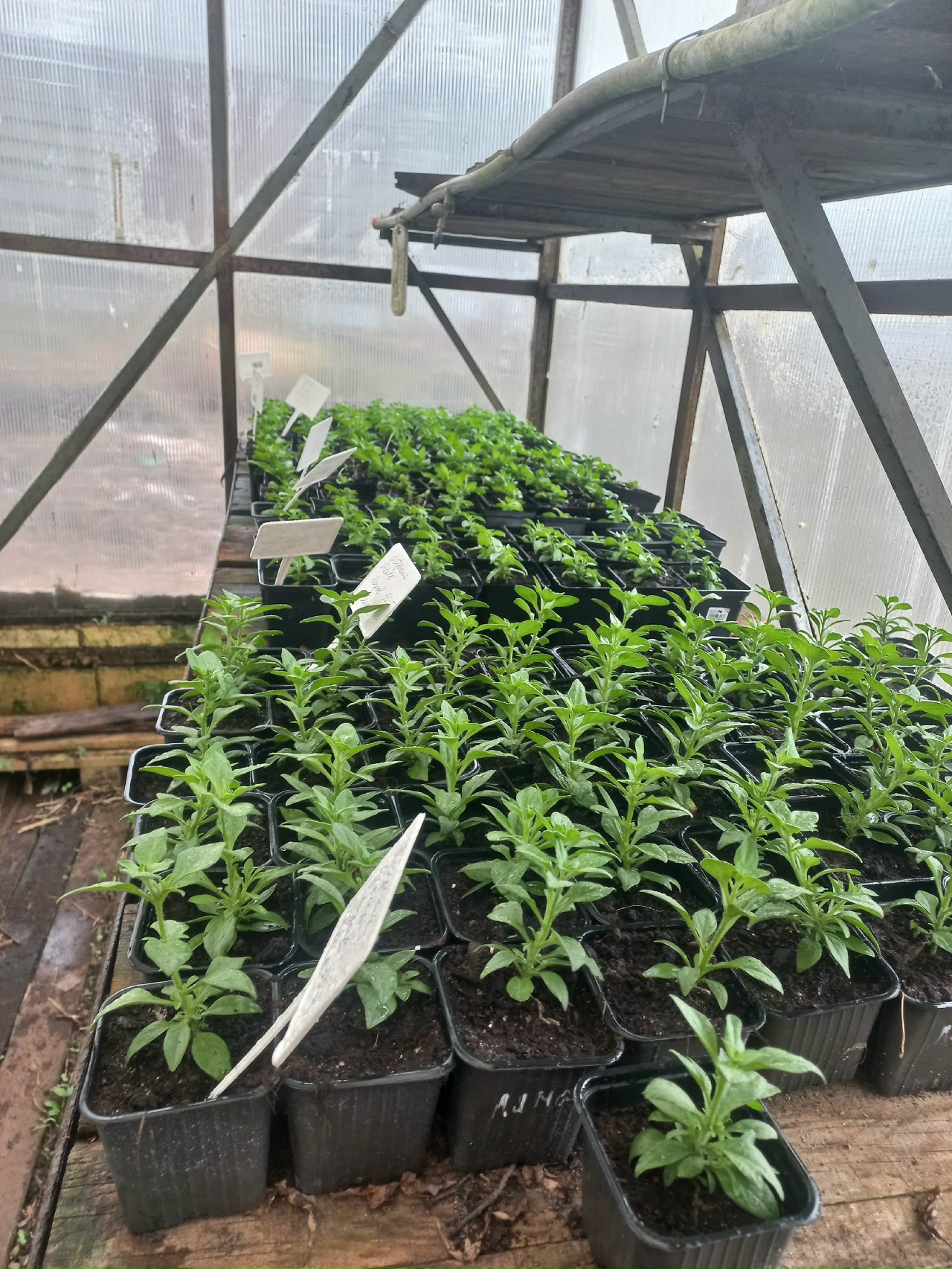 В этом году у нас появились новые сорта и уникальные расцветки анютиных глазок, новые сорта калиброхии, а так же пестрые сорта ампельной петунии, а так же как и всегда бегонии вечноцветущие и клубневые, лобелия, алиссум,бархатцы и наша любимица бакопа.